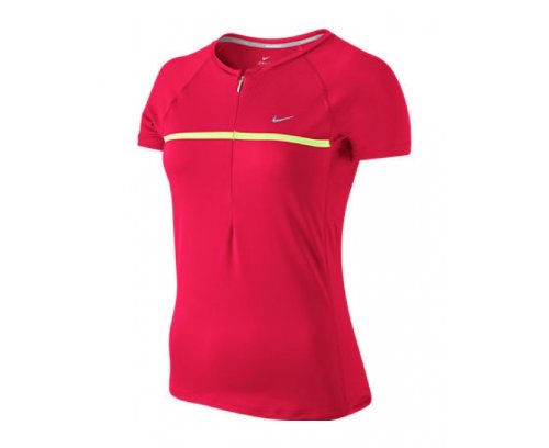 NIKE Sphere Dry Tee-shirt de Course à Pied Demi Zip pour Femme, Rouge, S